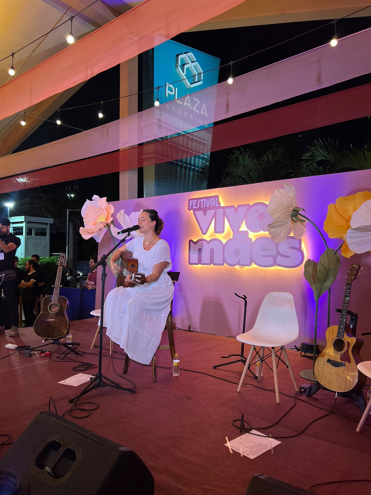 A cantora Tiê entoou seus sucessos e foi a atração do primeiro dia do Festival Viva Mães, no Plaza Shopping, neste sábado (27). A artista colocou todos para cantar, até mesmo as crianças, no jardim do piso L2 do mall. A ação do Plaza tem diversão garantida para toda a família, com espaço para arte, moda, gastronomia, espaço kids e shows, que também ocorrerão no domingo (28) e de 3 a 5 de maio.
