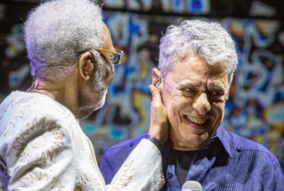 O público que lotou a Marina da Glória, no Rio de Janeiro, na noite deste domingo (1º), foi surpreendido por um momento histórico: Gilberto Gil convidou Chico Buarque para dividir o palco e cantar “Cálice”, canção composta por eles nos anos 1970, que se tornou um dos maiores símbolos da resistência artística e política durante a ditadura militar.