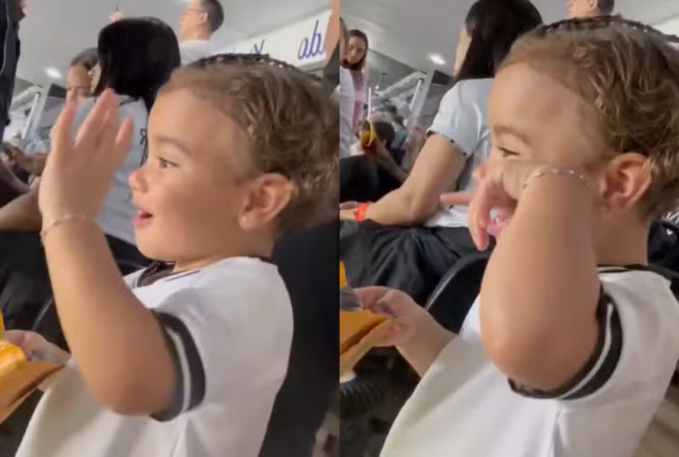 No vídeo compartilhado por Bruna Biancardi nas redes sociais, Mavie aparece olhando atentamente para o campo e dá risadas ao avistar “a Baleia”, mascote oficial do Santos. Em outro momento, a menina acena e demonstra toda sua empolgação com os personagens que animavam o estádio.