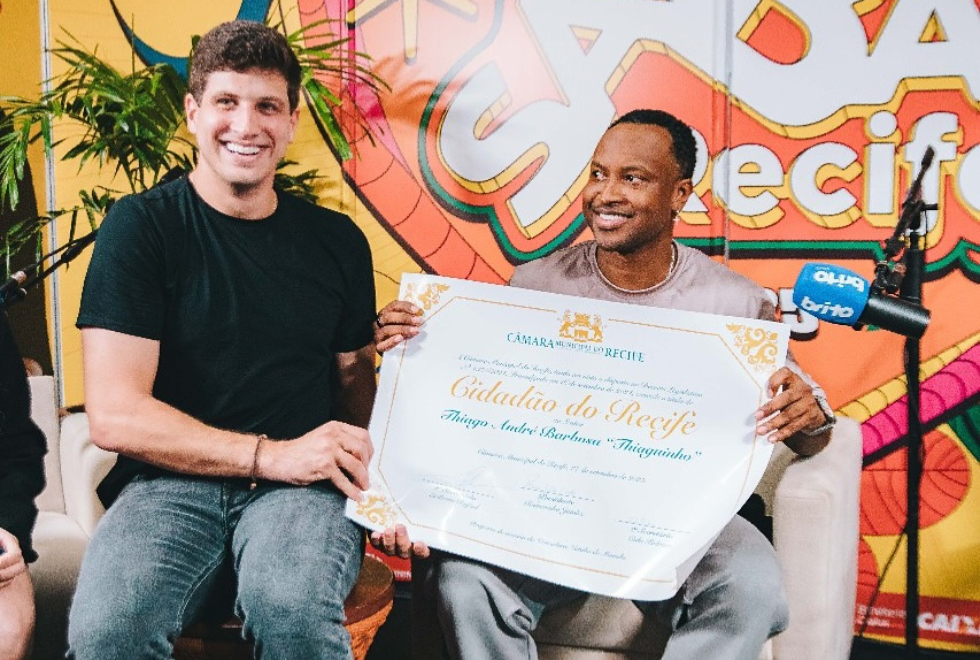 Foi uma emoção gigante viver esse momento. Preparei uma surpresa especial: entreguei o título de cidadão recifense ao nosso querido Thiaguinho. A homenagem, de autoria do vereador Hélio Guabiraba e coautoria da vereadora Natália de Menudo, reconhece oficialmente Thiaguinho como recifense de coração. Agora ele não é só um artista que emociona multidões, mas também parte da nossa cidade”, escreveu o prefeito.