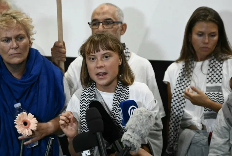 Greta fazia parte da Flotilha Global Sumud, com cerca de 500 ativistas que tentavam levar ajuda humanitária a Gaza em mais de 40 barcos. Israel interceptou a flotilha, e os integrantes foram detidos. Greta e outros 170 ativistas foram deportados, enquanto 14 brasileiros seguem presos.